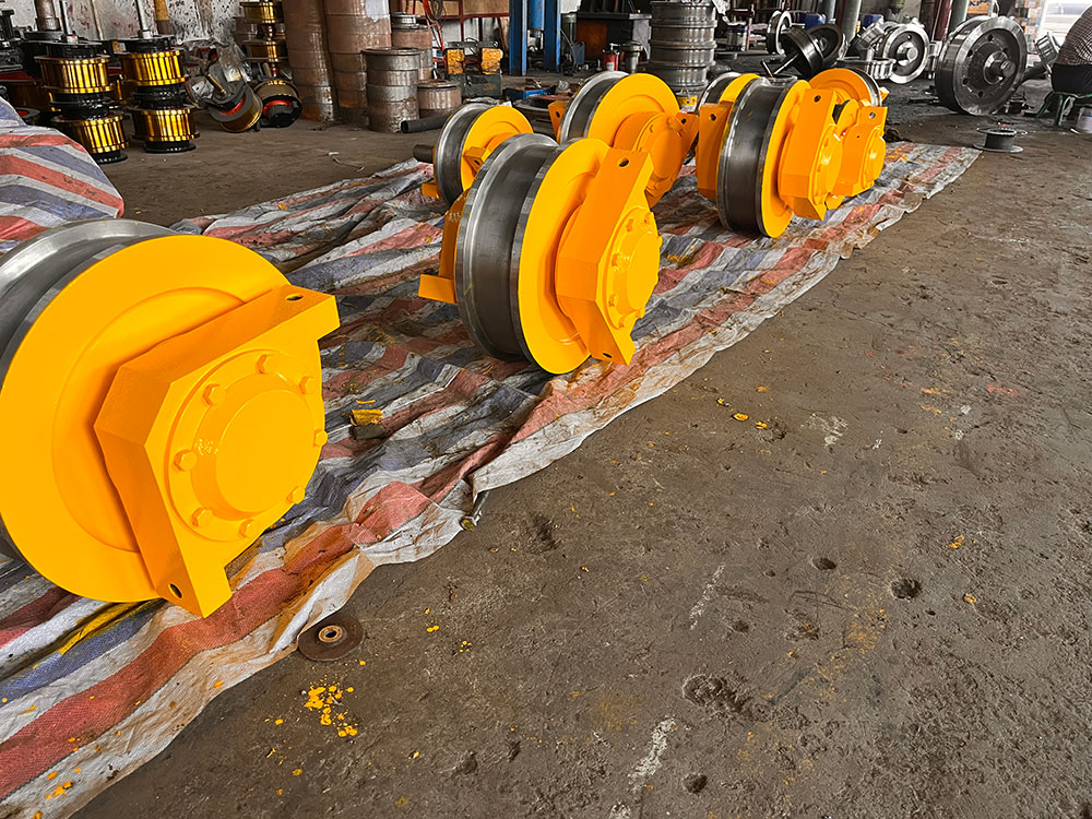起重機(jī)車(chē)輪組:起重機(jī)運(yùn)行機(jī)構(gòu)車(chē)輪的水平偏斜值是起重機(jī)重要的技術(shù)參數(shù),偏斜值超差會(huì)造成啃軌,增大運(yùn)行阻力,產(chǎn)生振動(dòng)和噪音,加劇軌道和車(chē)輪磨損,大大降低起重機(jī)使用壽命,所以各類(lèi)起重機(jī)制造技術(shù)條件都要對(duì)車(chē)輪水平偏斜規(guī)定允許的數(shù)值。