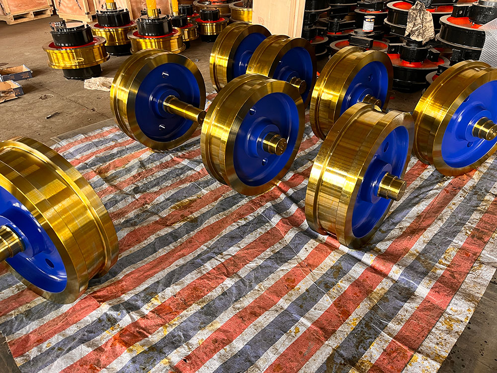 起重機(jī)車輪組:起重機(jī)運(yùn)行機(jī)構(gòu)車輪的水平偏斜值是起重機(jī)重要的技術(shù)參數(shù),偏斜值超差會(huì)造成啃軌,增大運(yùn)行阻力,產(chǎn)生振動(dòng)和噪音,加劇軌道和車輪磨損,大大降低起重機(jī)使用壽命,所以各類起重機(jī)制造技術(shù)條件都要對車輪水平偏斜規(guī)定允許的數(shù)值。